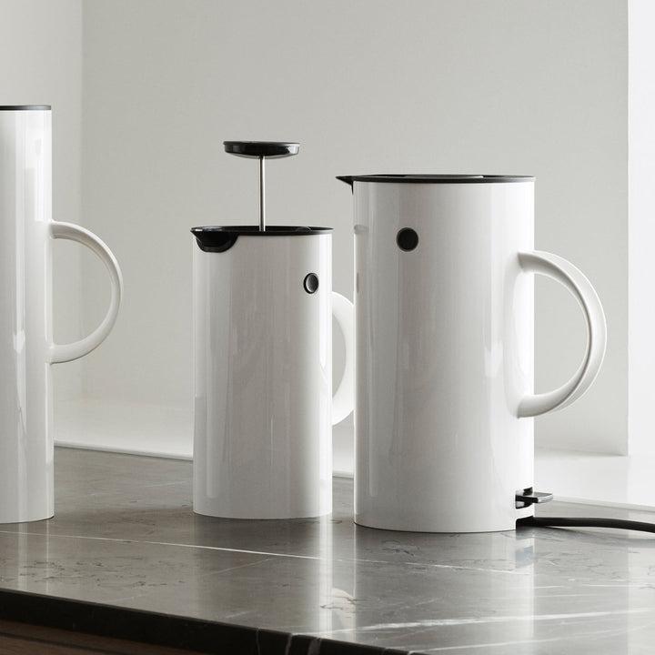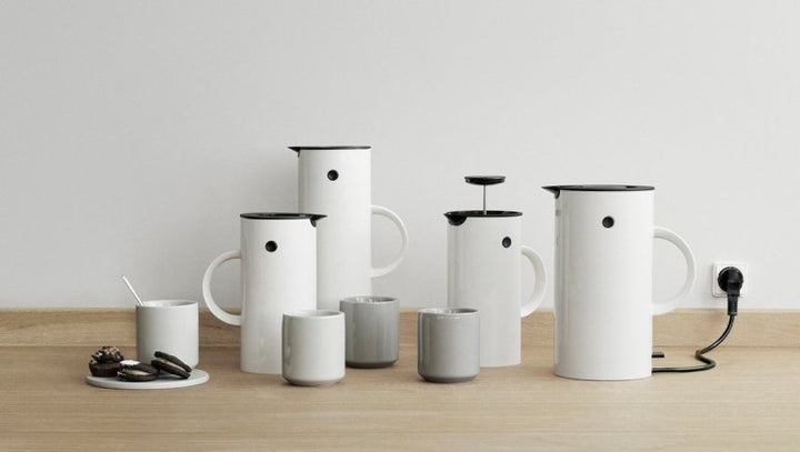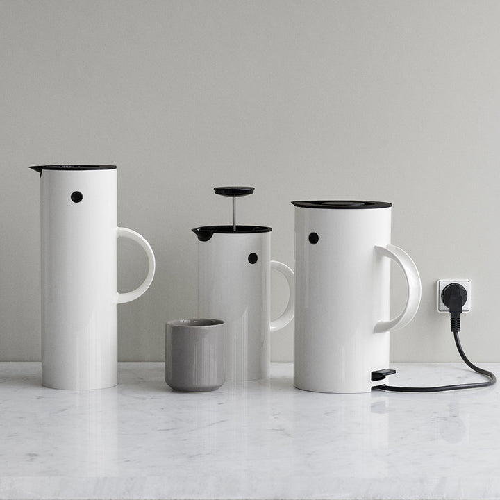 El icónico termo EM77 de Erik Magnussen ha adornado las mesas en todo el mundo durante más de 40 años, y ahora se presenta un miembro completamente nuevo de la familia EM: el hervidor eléctrico EM77, que agregará el máximo estilo a tu hogar al igual que el termo. Ideal para las cocinas incorporadas a la casa y a la vista. El hervidor contiene 1,5 lts y está equipado con un filtro extraíble y un interruptor de seguridad para hervir en seco. La base queda totalmente oculta.